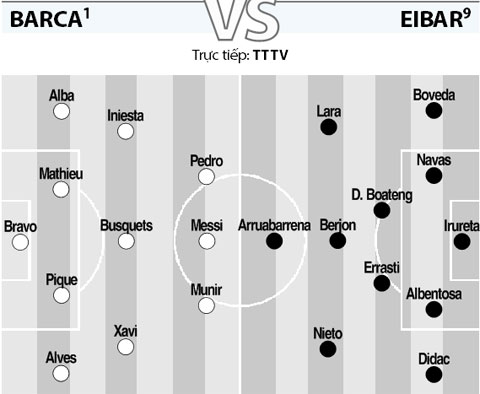 Khó khăn của Barca là lợi thế của Eibar. Đội bóng này đang rất sung sức. Cả đội hình CLB xứ Basque vừa có trọn gần 2 tuần nghỉ ngơi. HLV Gaizka Garitano còn mang tới Nou Camp lực lượng gần như mạnh nhất. Danh sách vắng mặt của họ chỉ còn Manu Del Moral, sau khi 2 ngôi sao là tiền vệ trung tâm Derek Boateng và hậu vệ Didac Vila đều đã hoàn toàn bình phục chấn thương.