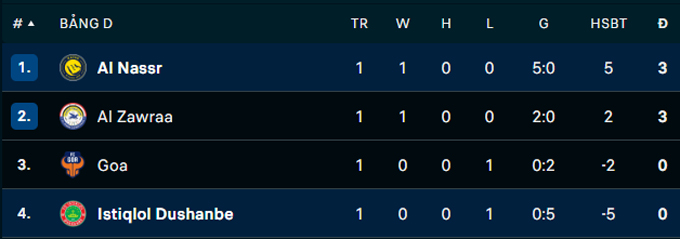 Ở lượt trận thứ 2 diễn ra vào ngày 1/10, Istiklol sẽ đối đầu với Goa và sau đó 1 ngày, Al Nassr sẽ chạm trán Al Zawraa.