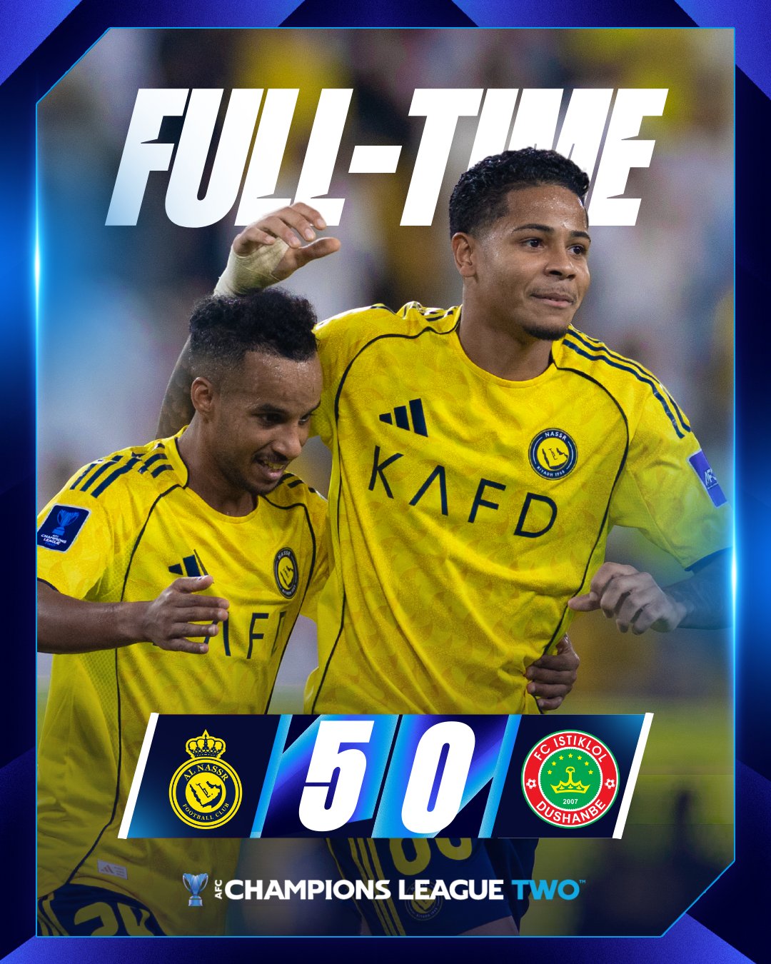 Phải hành quân tới sân của Al Nassr - ứng viên vô địch của AFC Champions League Two 2205/26, Istiklol chơi với hàng thủ rất đông để hạn chế khả năng tấn công của đối thủ. Al Nassr không Ronaldo gặp chút khó khăn nhưng họ cũng chỉ cần 20 phút để có được bàn thắng mở tỷ số.