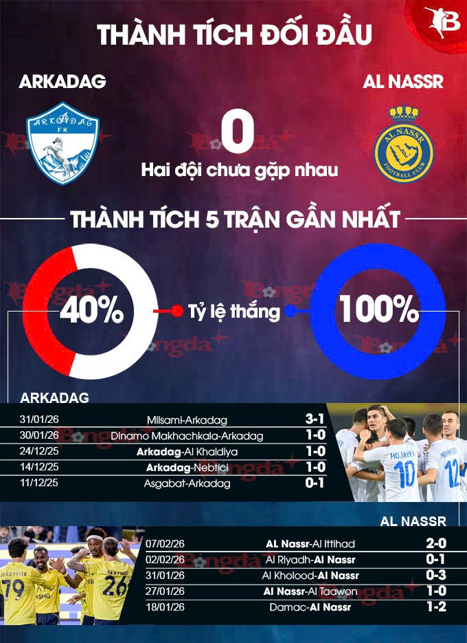 BONGDAPLUS dự đoán tỷ số trận Arkadag vs Al Nassr