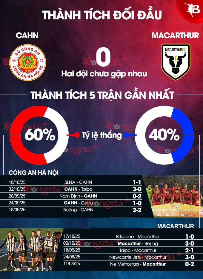 Macarthur FC là đại diện đến từ nền bóng đá hàng đầu châu lục. Tuy nhiên, so với mặt bằng chung, đội bóng xứ chuột túi cũng không vượt trội hơn các đội ở bảng E. Với lợi thế sân nhà cùng phong độ đang ổn định, CAHN chắc chắn sẽ chơi với tinh thần quyết tâm cao nhất để giành 3 điểm, qua đó tiến một bước dài vào vòng sau.