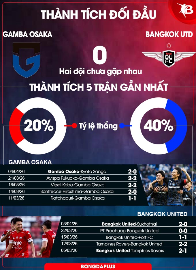 - Hai đội đều ghi bàn: Gamba Osaka ghi bàn ở 9/10 trận đấu gần đây. Bangkok United cũng “nổ súng” ở 19/20 trận gần nhất.