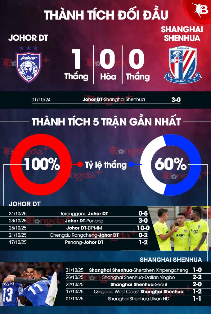 Johor DT bước vào trận đấu này với phong độ ấn tượng, và không có gì ngạc nhiên nếu đại diện Malaysia đánh bại được Shanghai Shenhua, đội bóng mà họ từng đè bẹp 3-0 ở lần gặp nhau gần nhất cách đây hơn một năm.