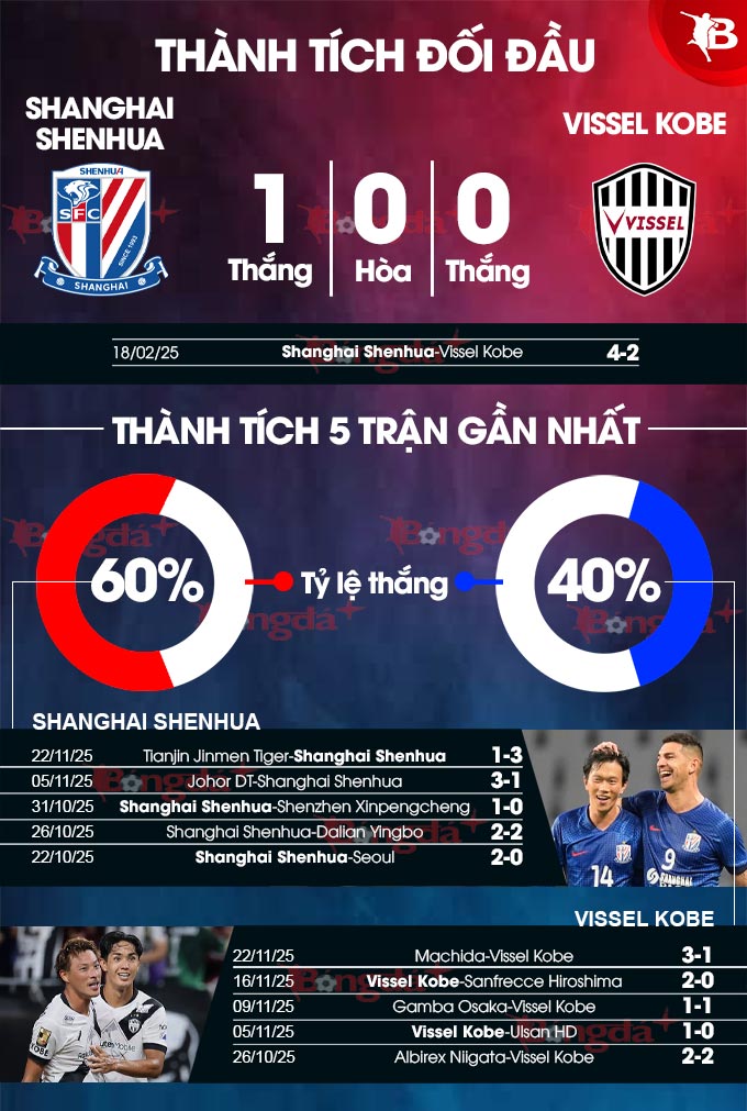 Phân tích dữ liệu chuyên sâu Shanghai Shenhua vs Vissel Kobe