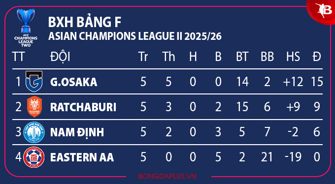 Đó là nhiệm vụ không hề đơn giản, bởi Gamba Osaka đã giành ngôi đầu bảng nên có thể, đại diện của Nhật Bản chỉ sử dụng đội hình dự bị và cũng có thể không bung hết sức khi tiếp đón Ratchaburi. Vì thế, cơ hội để đội bóng của Thái Lan có ít nhất 1 điểm trong chuyến làm khách này là hoàn toàn khả dĩ. Khi ấy, Nam Định có thắng Eastern AA với tỷ số đậm đến đâu chăng nữa thì tham vọng ở AFC Champions League Two 2025/26 của họ cũng chấm dứt.