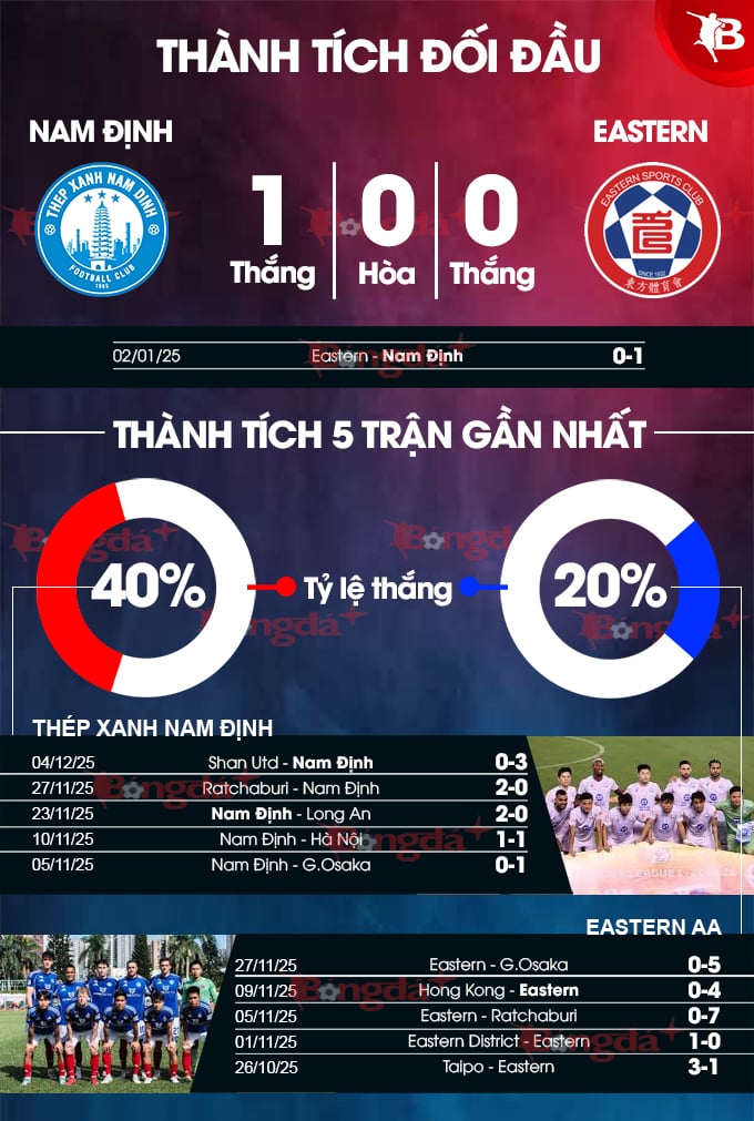 BONGDAPLUS dự đoán tỉ số trận Nam Định vs Eastern AA