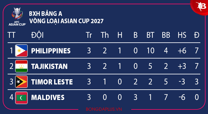 Không còn nghi ngờ gì nữa, Tajikistan là đối thủ chính của Philippines trong cuộc đua tranh ngôi đầu bảng A, qua đó, giành vé dự VCK Asian Cup 2027. Hiện tại, cả 2 đội đang cùng có 7 điểm, Philippines xếp trên đối thủ ở có hiệu số bàn thắng bại tốt hơn. Đây là ưu thế mà Philippines chắc chắn rất muốn duy trì để tạo lợi thế trước khi 2 đội chạm trán nhau ở trận lượt về, diễn ra vào vòng cuối cùng của vòng loại.