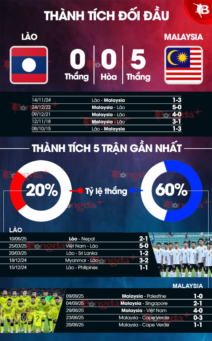 Nếu sử dụng đội hình này, Malaysia chưa chắc đã có thể đánh bại được những đội bóng hàng đầu của Đông Nam Á. Nhưng ông Peter Cklamovski khi nhìn vào vị trí trên bảng xếp hạng thì có lẽ, mang tư tưởng lạc quan chiến thắng lớn. Khách quan mà nói, vị trí 185 của Lào so với vị thứ 123 của Malaysia đem đến cảm giác chênh lệch ấy. Thành tích đối đầu cũng nghiêng về “Hổ Malay”. Trận gần nhất Lào có điểm trước Malaysia là ở vòng bảng AFF Cup 2002 (hòa 1-1), sau đó, là 8 trận toàn thua.