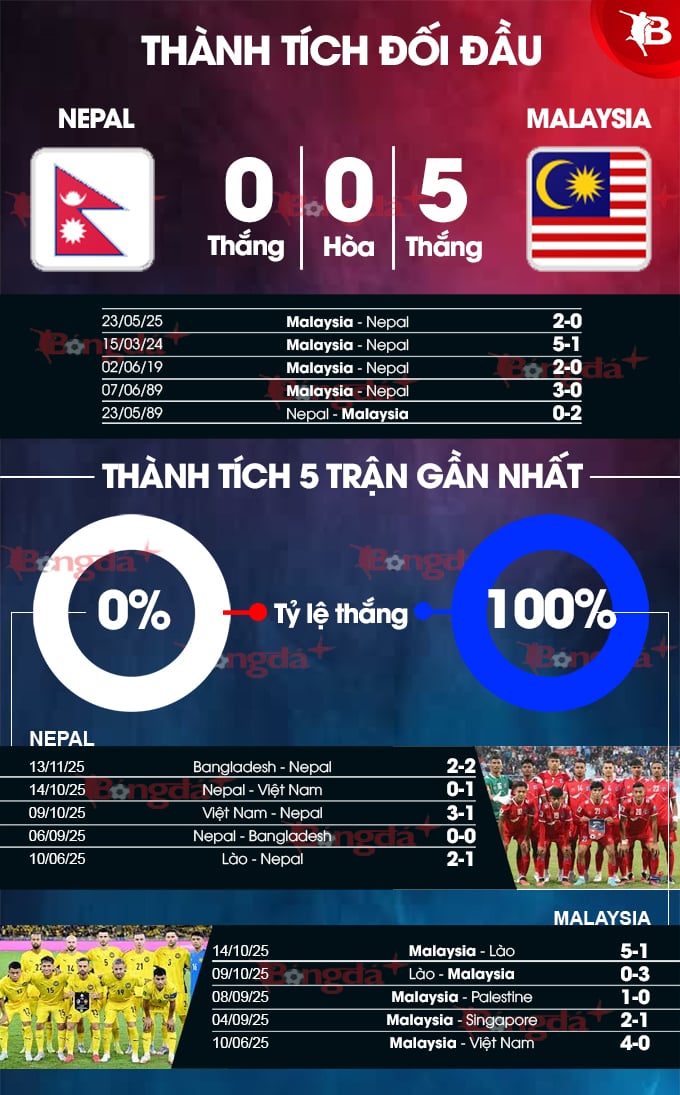 Số phận của Malaysia rất có thể sẽ được AFC phán quyết sau trận đấu với Nepal và trước chuyến làm khách trên sân ĐT Việt Nam vào tháng 3/2026. Dù kết cục có thế nào thì Malaysia cũng phải hướng đến 3 điểm trong cuộc đối đầu với Nepal, trước khi phó thác cho… định mệnh. Chất lượng cao hơn lại có mặt sân quen thuộc nên nhiều khả năng Malaysia sẽ giành trọn 3 điểm trận này.