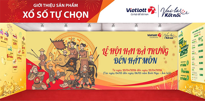 Từ 20–22/04/2026 (Tức ngày 04/03 đến ngày 06/03 năm Bính Ngọ – Âm lịch), tại không gian linh thiêng của Đền Hát Môn – nơi tôn vinh hai vị nữ anh hùng dân tộc Hai Bà Trưng, Vietlott chính thức góp mặt với gian hàng truyền thông đầy màu sắc và hấp dẫn! ĐẾN HỘI – ĐỪNG QUÊN GHÉ VIETLOTT Giữa không gian lễ hội truyền thống rộn ràng và đậm đà bản sắc, đừng bỏ lỡ cơ hội check-in tại gian hàng Vietlott nổi bật giữa dòng người trẩy hội; thưởng thức làn điệu dân ca quan họ ngọt ngào tinh tế; trải nghiệm nặn tò he truyền thống; xin chữ thư pháp cầu may đầu năm; nhận những phần quà hấp dẫn khi tham gia hoạt động và thử vận may với các sản phẩm xổ số tự chọn hiện đại. |