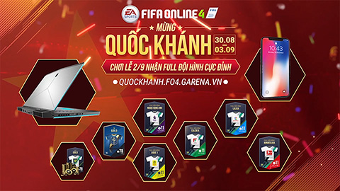 Bên cạnh đó là cơ hội sở hữu hàng loạt ngôi sao bóng đá và thậm chí full đội hình từ ngũ đại giải đấu hàng đầu châu Âu: Anh, Đức, Tây Ban Nha, Ý, Pháp! Xem thông tin sự kiện Quốc Khánh chơi lễ 2/9 nhận full đội hình cực đỉnh của game bóng đá online hàng đầu Việt Nam FIFA Online 4 tại đây.
