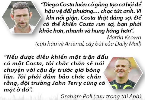 | “Trên sân cỏ, tôi luôn luôn máu lửa như thế. Đó là cá tính của tôi và tôi cảm thấy mình không cần phải thay đổi chỉ vì vừa phải nhận một án treo giò”, Diego Costa |