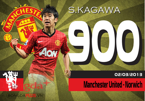 Shinji Kagawa tỏa sáng rực rỡ với 1 hat-trick trong chiến thắng 4-0 trước Norwich. Bàn thứ 900 tại Old Trafford là một cú vô lê đẹp mắt của tiền vệ người Nhật Bản.