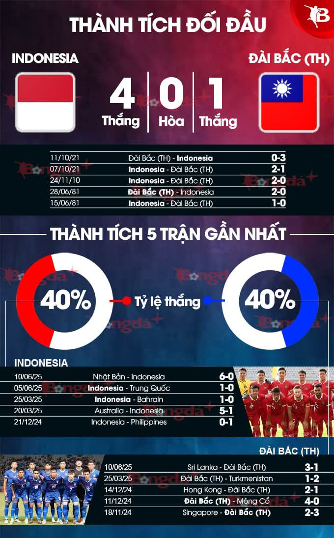 Phân tích phong độ Indonesia vs Đài Bắc Trung Hoa