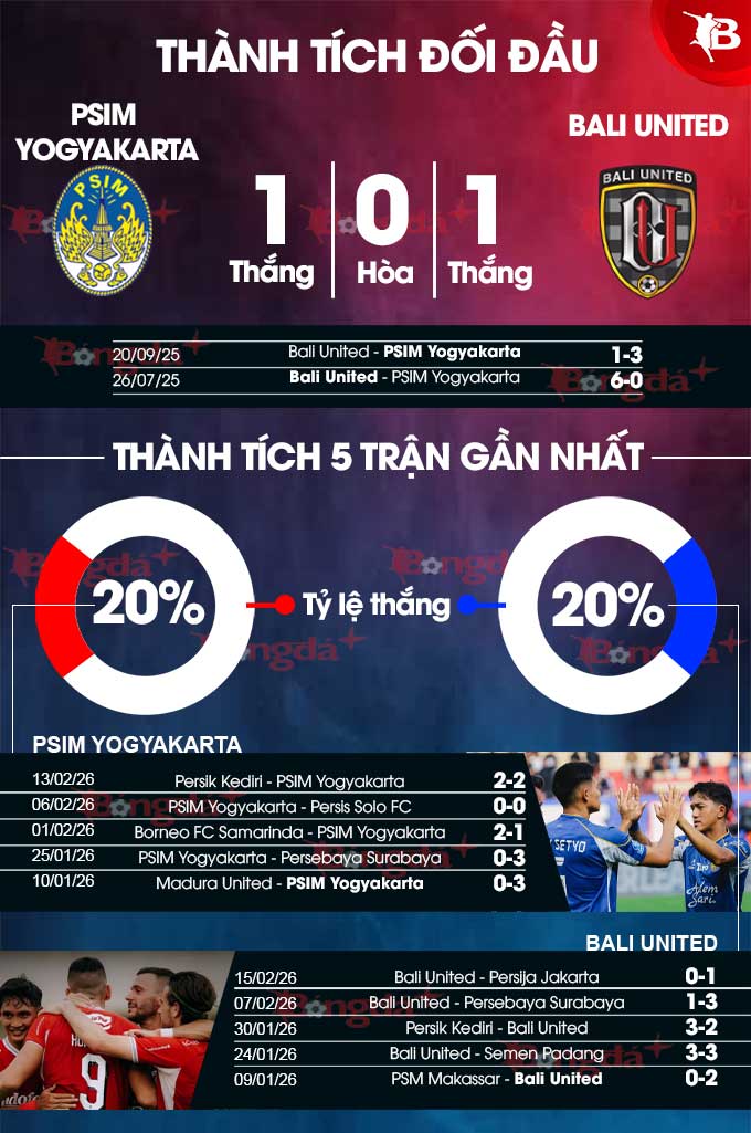 Phân tích phong độ PSIM Yogyakarta vs Bali United