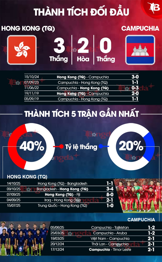 Với Campuchia, FIFA Days tháng 11 chỉ là cuộc “dạo chơi” bởi đội bóng xứ Chùa tháp không có mục tiêu chính thức nào khi đã bị loại khỏi Asian Cup 2027. Đích ngắm có chăng là một trận đấu để kiểm nghiệm đội hình. Tất nhiên, Campuchia cũng không muốn chuốc lấy thất bại bởi một trận thua sẽ ít nhiều ảnh hưởng đến vị trí của họ trên bảng xếp hạng FIFA bởi trận giao hữu này được tính điểm. Hơn nữa, Campuchia rất muốn đòi lại món nợ thua trận hơn 1 năm trước chính Hong Kong.