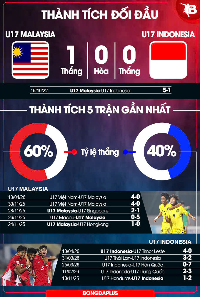 Xét về quá khứ, U17 Malaysia từng thắng đậm U17 Indonesia 5-1 tại vòng loại U17 châu Á 2022. Tuy nhiên, đó là câu chuyện của vài năm trước. Thời gian gần đây, U17 Indonesia có sự tiến bộ rõ rệt, được đầu tư tốt hơn cho các tuyến trẻ, thường xuyên có cơ hội thi đấu quốc tế và tích lũy kinh nghiệm. Chắc chắn rằng, đây sẽ không phải trận đấu dễ dàng của U17 Malaysia.