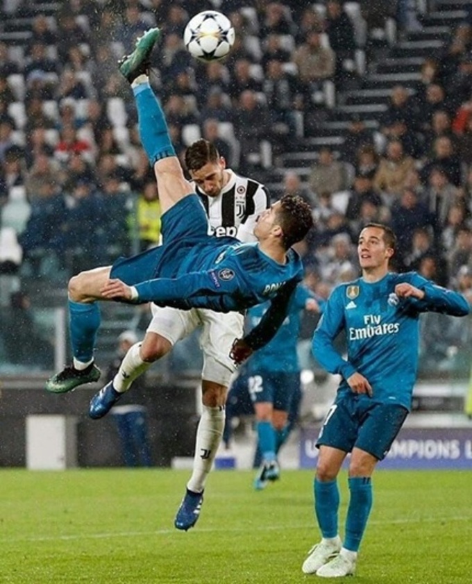 Ở tứ kết lượt đi Champions League mùa 2017/18, Cristiano Ronaldo đã thực hiện động tác kỹ thuật ngả người móc bóng để ghi bàn vào lưới của chủ nhà Juventus. Đến nay, đó vẫn được ca ngợi là bàn thắng được thực hiện theo phong cách “xe đạp chổng ngược” đẹp nhất trong lịch sử bóng đá. Cú tạt bóng vào vòng cấm địa đối phương từ đồng đội ở phút 64 có vẻ hơi cao, một cầu thủ của Juve khi đó đã sẵn sàng đánh đầu phá bóng. Nhưng ở tư thế quay lưng lại khung thành, CR7 bật cao như một chiếc lò xo, bàn chân ở độ cao ngang đầu của cầu thủ Juve, móc bóng vào lưới của Juve khiến thủ thành Gianluigi Buffon bất lực.