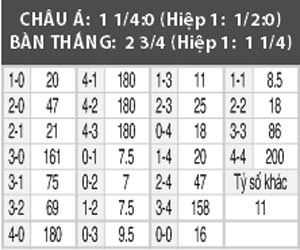 RANGERS THẮNG THEO CHÂU Á: Rangers đang chơi rất tốt khi thắng 11, chỉ thua 4/20 trận gần nhất. Trong khi đó, Kilmarnock lại đá cực tệ khi chỉ thắng 6 nhưng thua 11/20 trận gần nhất. Đẳng cấp vượt trội của Rangers sẽ giúp họ dễ dàng có 3 điểm trên sân Kilmarnock.