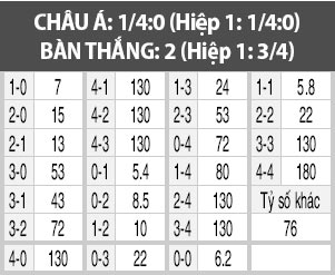 KHÁCH THẮNG KÈO CHÂU Á: Terek Grozny đang chơi rất tệ. Bằng chứng là họ chỉ thắng 7 nhưng thua 8/20 trận gần nhất. Trên sân nhà, Terek Grozny cũng không thắng 4 trận gần nhất, nhận 1 thất bại. Trong khi đó, CSKA Moscow đá khá tốt trên sân khách khi thắng 7, hòa 9/20 trận gần nhất. Họ sẽ có 3 điểm.