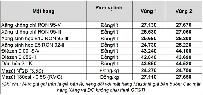 Liên Bộ Công Thương-Tài chính quyết định giảm giá xăng dầu từ 15 giờ 30 phút chiều ngày 8/4. Theo đó, giá xăng RON95 giảm về hơn 26.500 đồng/lít; giá dầu diesel giảm về sát ngưỡng 43.000 đồng/lít.