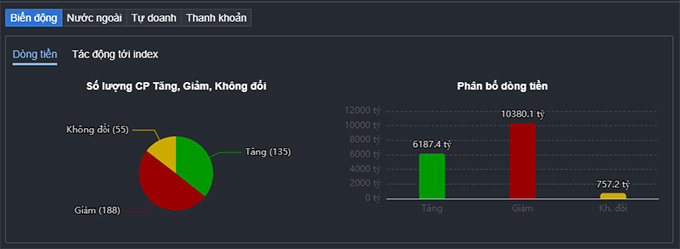 Ở chiều ngược lại, một số cổ phiếu midcap vẫn có nỗ lực hồi phục, thậm chí giữ được sắc xanh, nhưng lực đỡ này là không đủ để cân bằng áp lực từ nhóm vốn hóa lớn. Bức tranh thị trường vì thế nghiêng hẳn về phía tiêu cực, thể hiện qua độ rộng với số mã giảm áp đảo. Không chỉ vậy, dòng tiền cũng cho thấy sự lệch pha rõ rệt khi giá trị giao dịch tập trung nhiều hơn vào các cổ phiếu giảm giá – một dấu hiệu điển hình của việc bên bán đang kiểm soát cuộc chơi.