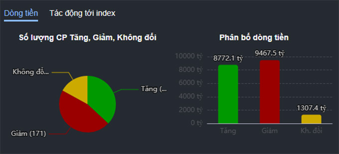 Điều này phản ánh thực tế: dù chỉ số tăng, nhưng mức tăng chủ yếu đến từ một số cổ phiếu trụ, thay vì sự lan tỏa toàn thị trường.