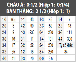TỪ 2 TỚI 3 BÀN: 4/5 trận chính thức gần đây của Frankfurt và 3/4 trận gần nhất của Cologne đều khép lại với tổng số bàn thắng rơi vào đoạn từ 2 tới 3. Nhất định cuộc so tài này cũng sẽ khép lại với kịch bản tương tự.