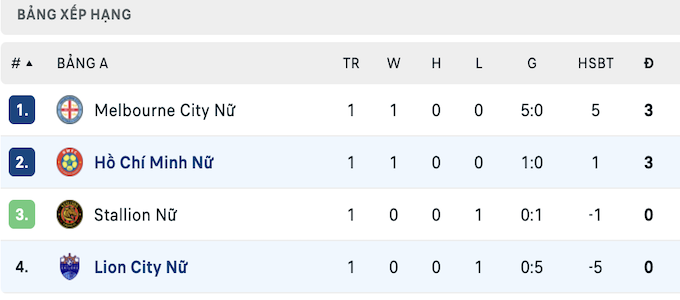 Trong khi đó, đội nữ Melbourne City sẽ có cuộc đối đầu với Stallion Laguna ở lượt thứ hai bảng A, cũng diễn ra trong ngày 16/11. Ở đó, khả năng đội bóng đến từ Úc châu sẽ có thêm một chiến thắng trước đối thủ đến từ Philippines, trước cuộc so kè với chủ nhà TP.HCM vào ngày 19/11.