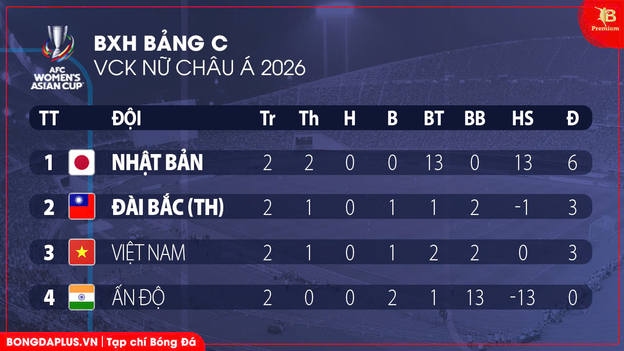 Riêng ở bảng C, đội đứng nhì là chưa xác định khi hiện tại vẫn là cuộc đua giữa Đài Bắc Trung Hoa, ĐT nữ Việt Nam và Ấn Độ. Ở lượt cuối, ĐT nữ Việt Nam sẽ gặp Nhật Bản. Điều kiện đặt ra cho thầy trò ông Mai Đức Chung là phải có ít nhất 1 điểm mới giành vé vào tứ kết.