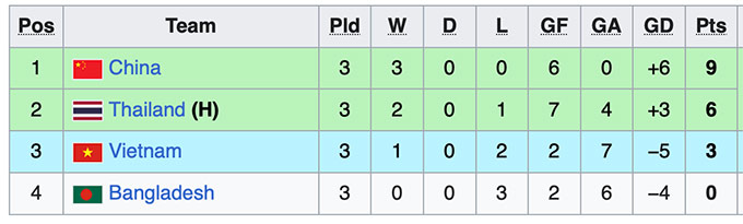 Sau cùng, U20 nữ Việt Nam thắng sát nút 1-0 và kết thúc bảng A với vị trí thứ 3 cùng hiệu số -5. Đây là thắng lợi hiếm hoi trong lịch sử U20 châu Á của “Nữ chiến binh trẻ sao vàng”.
