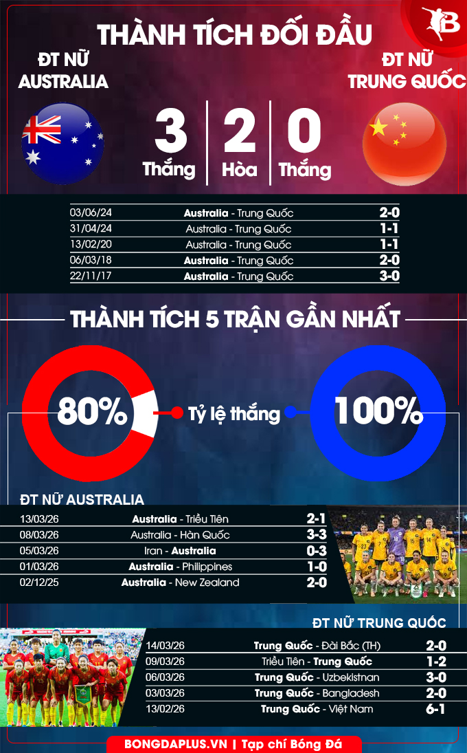 Phân tích phong độ ĐT nữ Australia vs ĐT nữ Trung Quốc