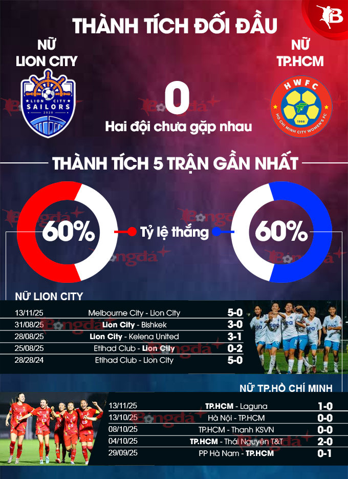 Đá sân nhà Thống Nhất, nên CLB nữ TP.HCM có lợi thế rất lớn trong cuộc đối đầu này. Chưa kể lực lượng cũng được đánh giá cao hơn, nên mục tiêu giành trọn 3 điểm của cô trò HLV Đoàn Thị Kim Chi cũng là điều dễ hiểu. Tuy nhiên, đừng quên trong dội hình của Lion City cũng có những ngoại binh có khả năng lật ngược thế cờ, vì vậy Huỳnh Như và các đồng đội không được phép chủ quan và khinh địch.