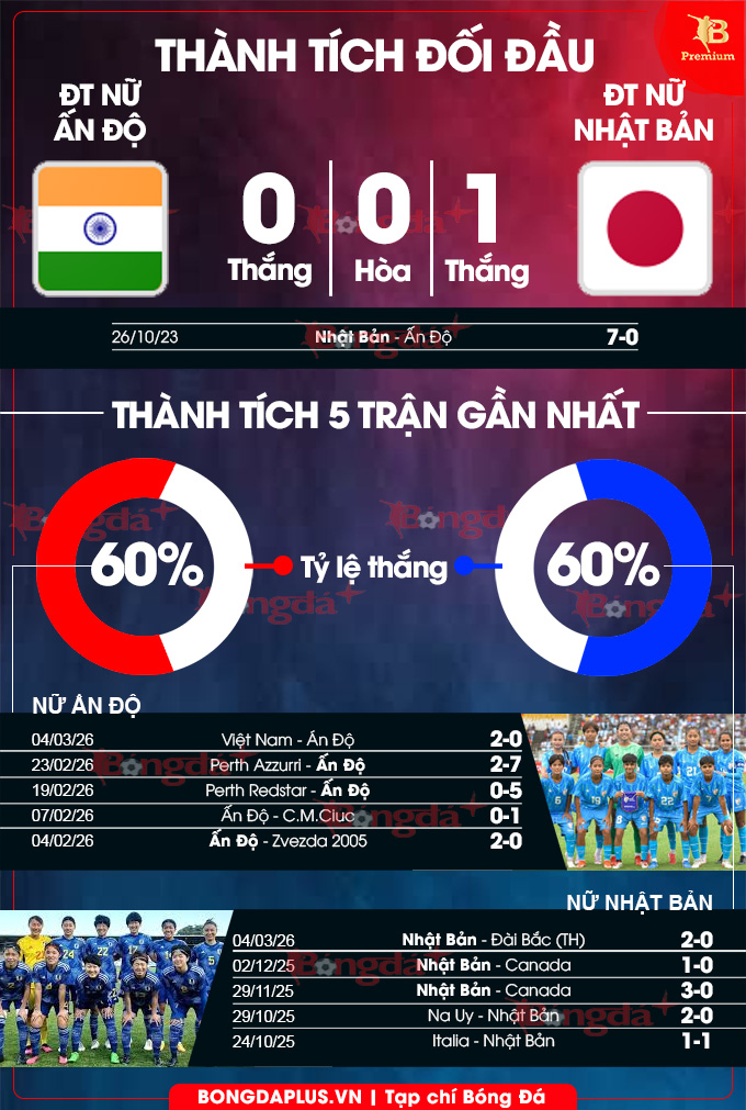 Phân tích phong độ ĐT nữ Ấn Độ vs ĐT nữ Nhật Bản
