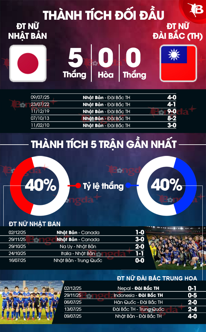 Phân tích phong độ ĐT nữ Nhật Bản vs ĐT nữ Đài Bắc Trung Hoa