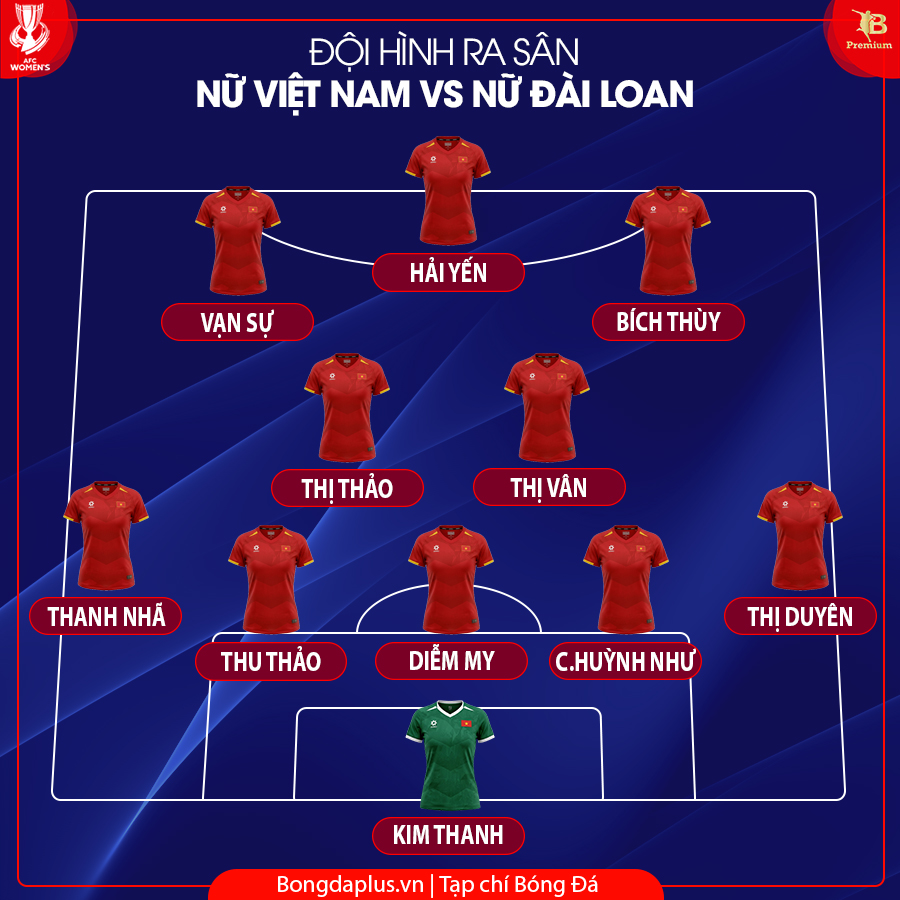 HLV Mai Đức CHung có một sự thay đổi so với trận đấu vừa qua. Theo đó, Huỳnh Như nhường chỗ cho Hải Yến đá chính.