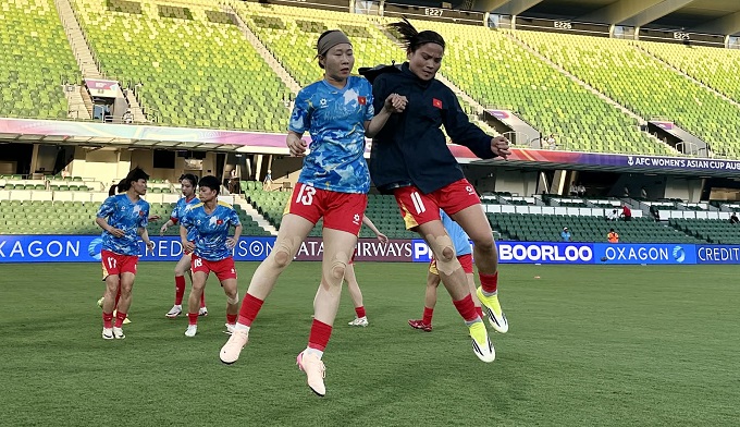 Vào lúc này, ĐT nữ Việt Nam đã kết thúc phần khởi đồng. Các cầu thủ trở lại phòng thay đồ để thay đổi trang phục trước khi ra sân.