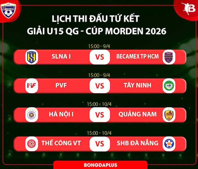 Trong khi đó, 2 trận tứ kết kết còn lại giữa Hà Nội - Quảng Nam và Thể Công Viettel – SHB Đà Nẵng sẽ diễn ra vào chiều 10/4. Trong ngày thi đấu này, Hà Nội đang cho thấy sự vượt trội và cũng là đội đang ghi nhiều bàn thắng nhất tại giải. Vì vậy ở cuộc đối đầu với Quảng Nam - đội xếp thứ 3 có thành tích tốt nhất giành vé vào tứ kết, khả năng Hà Nội sẽ chơi vượt trội để đi tiếp vào vòng trong. Đặc biệt ở trận tứ kết này, liệu đội bóng trẻ thủ đô có giành trận thắng đậm hay không vẫn là điều các khán giả đang hết sức chờ đợi.