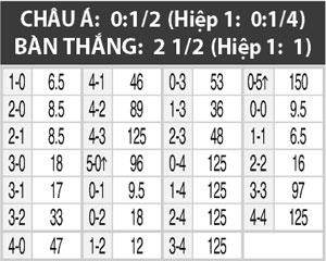 TỔNG BÀN THẮNG CHẴN: 7/8 lần đối đầu gần nhất của 2 đội có tổng bàn thắng là số chẵn. Trận đấu này rất có thể không có ngoại lệ.