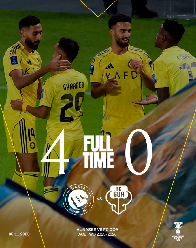 Chỉ phải tiếp đón đội bóng nhỏ FC Goa của Ấn Độ, Al Nassr không sử dụng đội hình xuất phát tốt nhất , trong đó có việc Ronaldo vắng mặt. Nhưng điều đó không hề làm CLB của Saudi Pro League gặp khó.