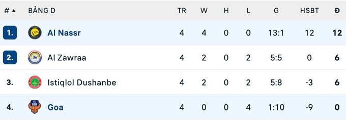 Kết quả này giúp đội bóng của Ronaldo củng cố ngôi đầu bảng D trên bảng xếp hạng Cúp C2 châu Á với 12 điểm trong tay. Họ duy trì phong độ toàn thắng và gần như chắc chắn giành vé sớm vào vòng knock-out, trong khi FC Goa tiếp tục chìm sâu ở đáy bảng với 0 điểm sau 4 trận.