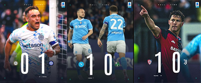 Trên BXH Serie A, Inter vẫn đang dẫn đầu với 49 điểm sau 21 trận. Họ hơn AC Milan 6 điểm nhưng đang đá nhiều hơn 1 trận. Napoli đứng thứ 3 với cùng 43 điểm nhưng đã đá 21 trận. Juventus đứng thứ 5 với 39 điểm.