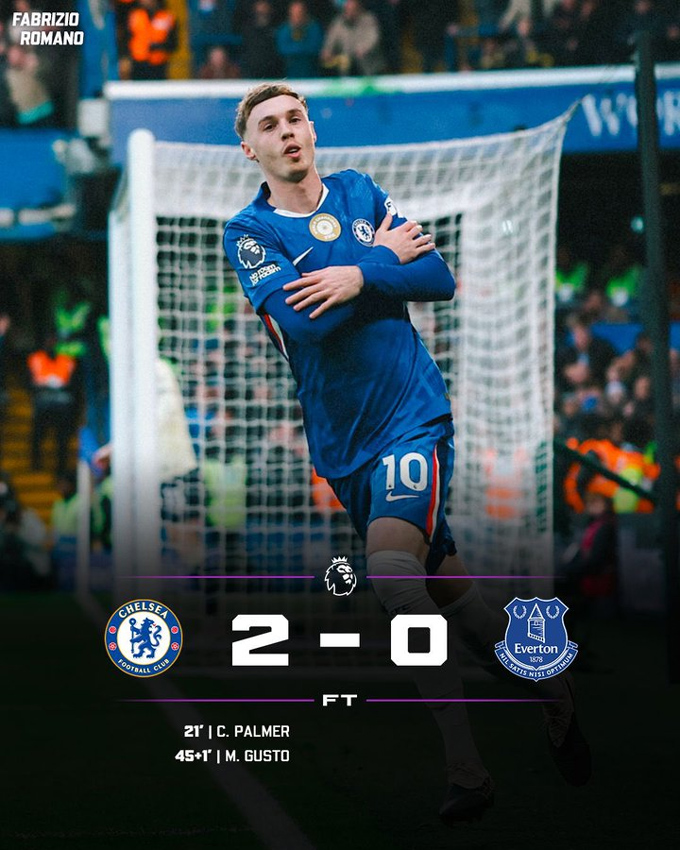 Được thi đấu trên sân nhà Stamford Bridge, Chelsea tự tin sẽ giành trọn 3 điểm trước Everton. Phút 21, Cole Palmer nhận bóng từ Malo Gusto, hãm bóng một nhịp vừa vặn trước khi thực hiện cú đá quyết đoán, mở tỷ số cho Chelsea.