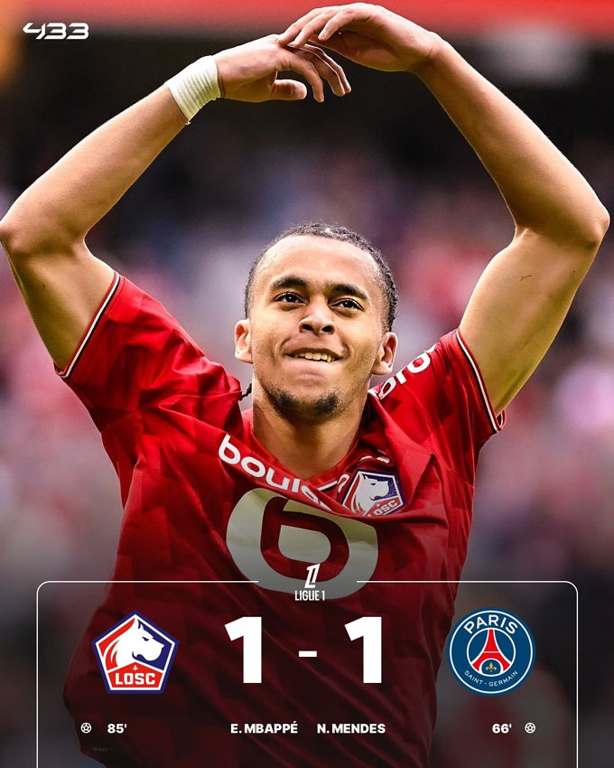 Tuy nhiên tới phút 85, Ethan Mbappe ghi bàn thắng quý như vàng giúp Lille "giật" lại 1 điểm từ tay những nhà đương kim vô địch. Sau 7 vòng, PSG vẫn dẫn đầu bảng Ligue 1 (16 điểm/7 trận) nhưng chỉ hơn 3 đội xếp sau 1 điểm.