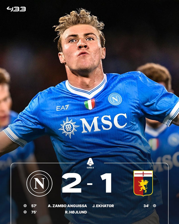 Tuy nhiên sang hiệp 2, Napoli đã ghi liền 2 bàn nhờ công của Anguissa (phút 57) và Hojlund (phút 75) để có chiến thắng ngược dòng đầy cảm xúc. Họ cũng chính thức đòi lại ngôi đầu bảng từ tay của AC Milan.