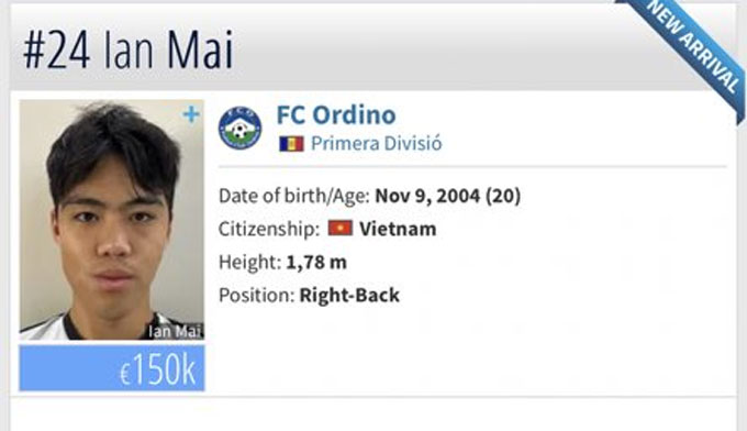 Theo trang định giá cầu thủ nổi tiếng Transfermarkt, Ian Mai hiện có giá trị khoảng 150.000 euro, một con số đáng chú ý dành cho một hậu vệ trẻ đang thi đấu ở giải Andorra. Giá trị này phản ánh sự đánh giá tích cực của giới chuyên môn vào tiềm năng phát triển bền vững của cầu thủ người Mỹ gốc Việt này.
