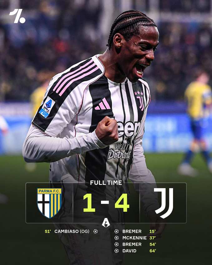 Cũng tại vòng 23 Serie A, một ông lớn khác là Juventus đã có chiến thắng 4-1 ngay trên sân của Parma. Bremer và McKennie đưa Bà đầm già vượt lên dẫn 2-0 chỉ sau 37 phút thi đấu. Tới phút 51, Cambiasso đá phản lưới nhà giúp Parma gỡ lại 1 bàn.