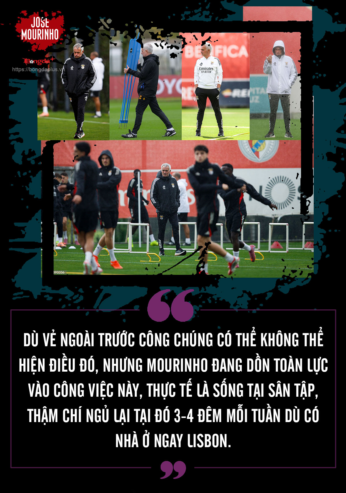 Bất chấp những lời xì xào, Mourinho vẫn đầy nhiệt huyết. Dù vẻ ngoài trước công chúng có thể không thể hiện điều đó, nhưng Mourinho đang dồn toàn lực vào công việc này, thực tế là sống tại sân tập, thậm chí ngủ lại tại đó 3-4 đêm mỗi tuần dù có nhà ở ngay Lisbon.