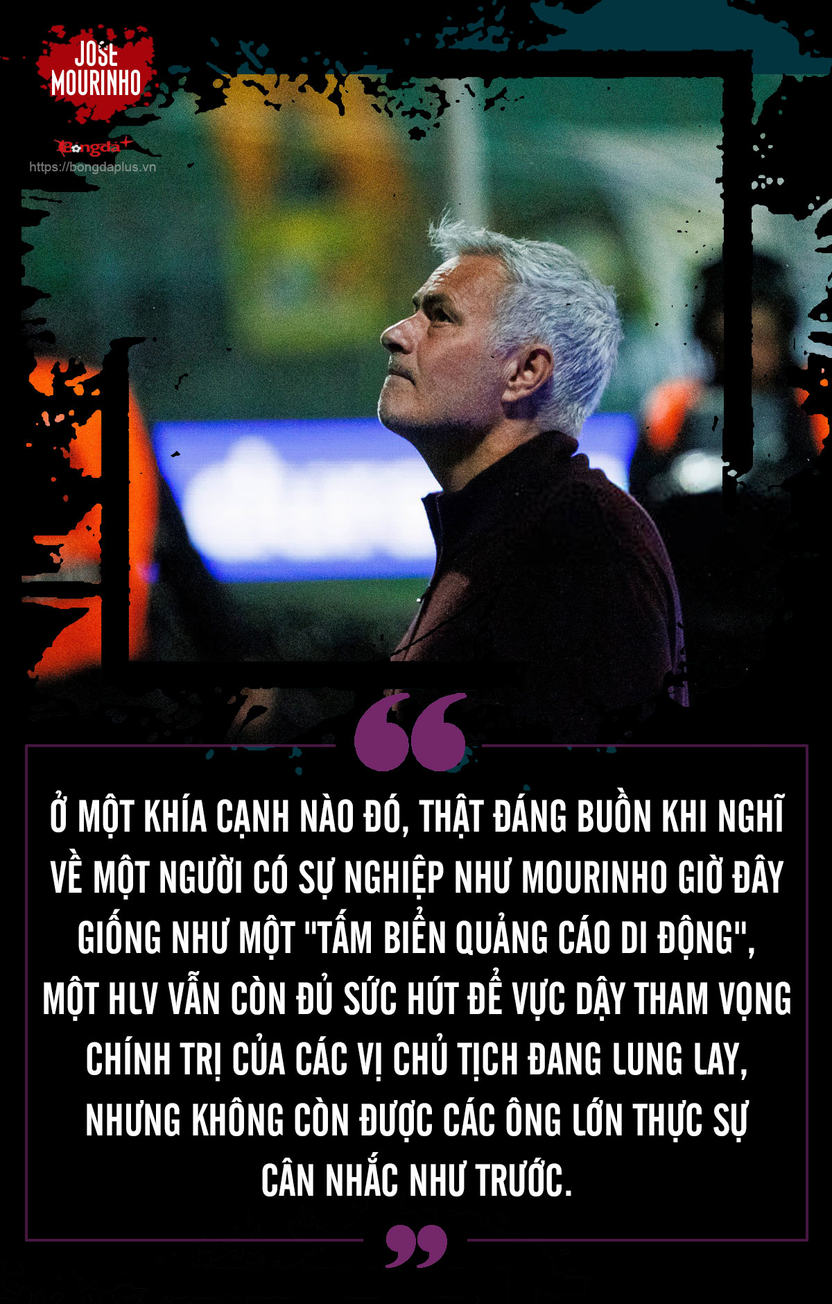Ở một khía cạnh nào đó, thật đáng buồn khi nghĩ về một người có sự nghiệp như Mourinho giờ đây giống như một "tấm biển quảng cáo di động", một HLV vẫn còn đủ sức hút để vực dậy tham vọng chính trị của các vị chủ tịch đang lung lay, nhưng không còn được các ông lớn thực sự cân nhắc như trước.