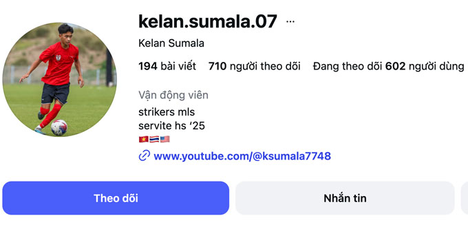 Trên trang cá nhân của mình, Kelan Sumala hiển thị mình mang 3 quốc tịch là Việt Nam, Thái Lan và Mỹ. Hiện chưa có thông tin là bố hay mẹ anh là người Việt Nam. Sumala sinh năm 2007 và có vị trí sở trường là hậu vệ trái.